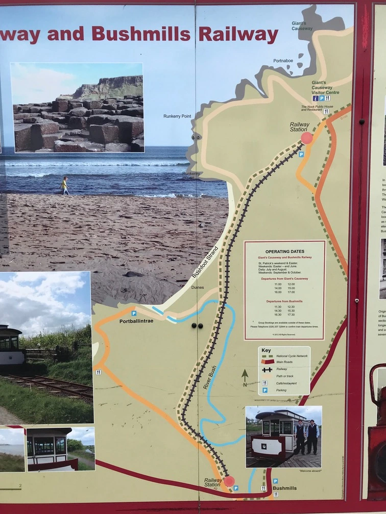 The route takes passengers along the stunning north antrim Coast, offering breathtaking views of the North Antrim coast, Portballintrea, and the Bushfoot Golf Course. The tram-type carriages, powered by diesel engines, travel along the golden sandy beach, reminiscent of the original Bushmills Hydro Electric Tram and Giant’s Causeway track. As the railway approaches Bushmills, the line turns and runs parallel to Ballaghmore Road, a notable local landmark and key junction point in the area.
